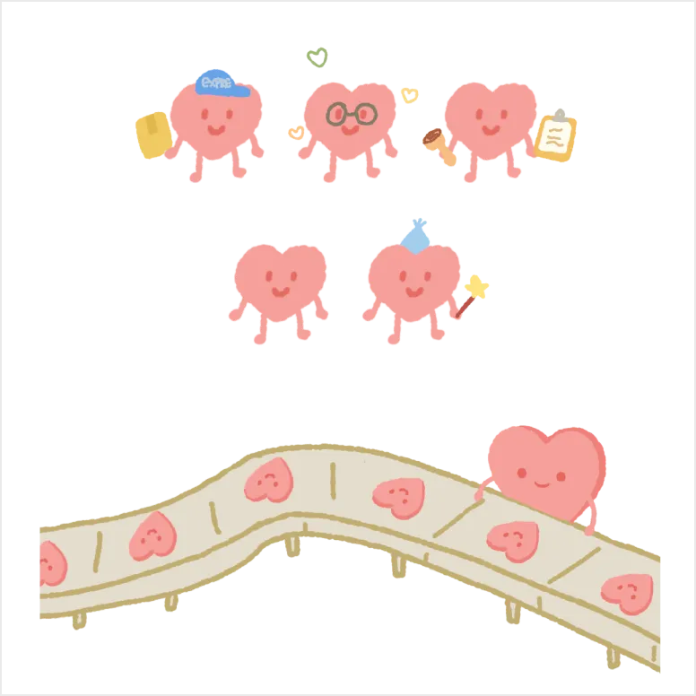 하쿠를 주인공으로 썸원 세계관의 스핀오프 스토리를 구상해보았다. 썸원의 정체성과 하트 모양의 이미지가 주는 심상이 확실했기 때문에 컨셉 구상은 크게 어렵지 않았다.