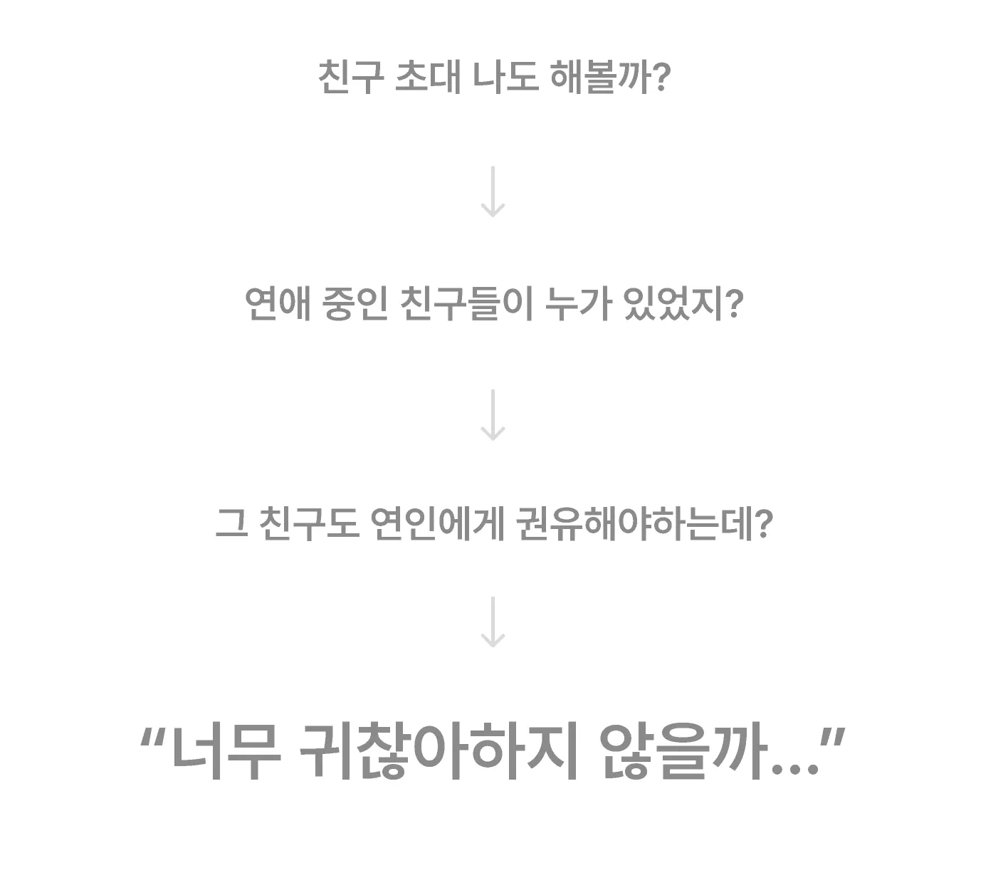 썸원은 너와 나, 우리 둘만이 사랑 가득한 비밀 공간에서 서로를 기록하는 서비스이다. 어찌보면 우리 둘만의 프라이빗한 공간에 외부인을 끌어들인다는 점이 거부 효과를 일으킬 수도 있다고 느꼈다. 또한 썸원은 그 동안 앱 내 기능 배포를 통해 이벤트를 진행한 이력이 적었다. 때문에 한정된 리소스 내 공수 대비 효과 또한 확실히 보장할 수 없었다.