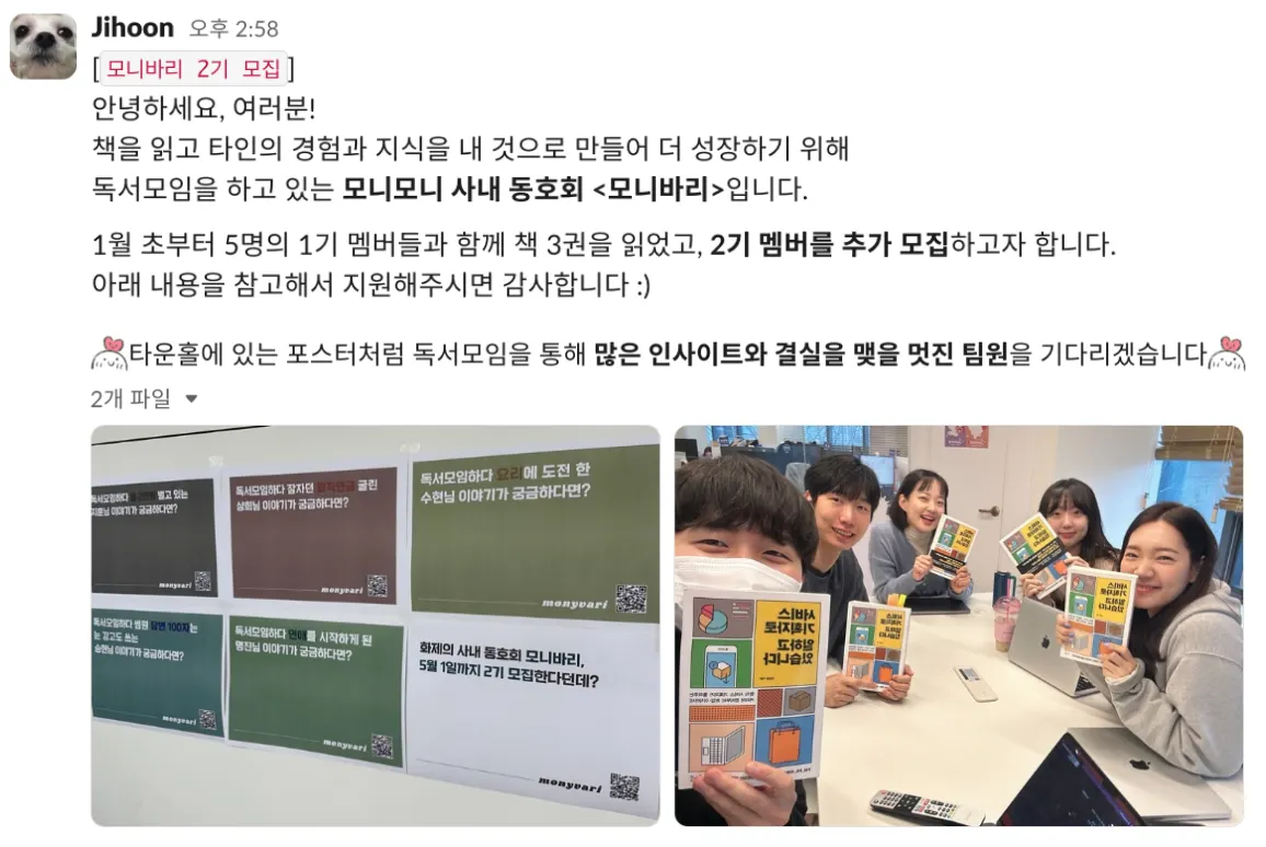 모니모니에는 학습을 위한 세미나를 비롯해 독서모임, 글쓰기 모임 등 지향점이 유사한 몬몬들이 모여 함께하고 있어요:)